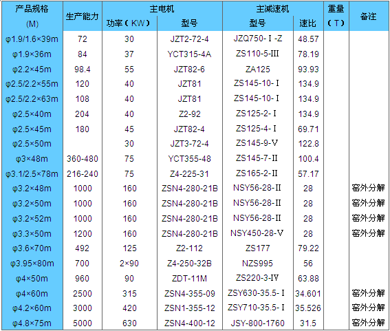 回轉(zhuǎn)窯技術(shù)參數(shù):